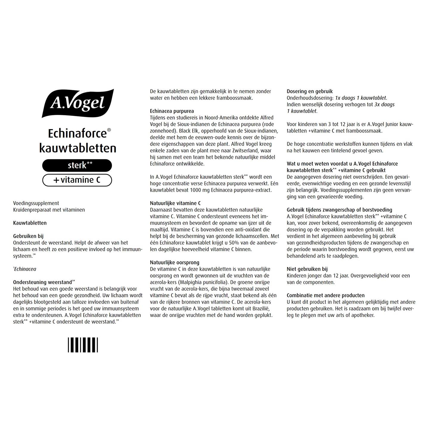 Plantenextracten: Rode zonnehoed (Echinacea purpurea herba et radix), Vulstof (Xylitol, Mannitol, Gemodificeerd maïszetmeel), Acerola kers (Malpighia punicifolia): (Bron van natuurlijke vitamine C), Glansmiddel (Magnesiumstearaat, Vetzuren), Natuurlijk Framboosaroma, Kleurstof (Rodebietenextract), Verstevigingsmiddel (Siliciumdioxide, Arabische gom).