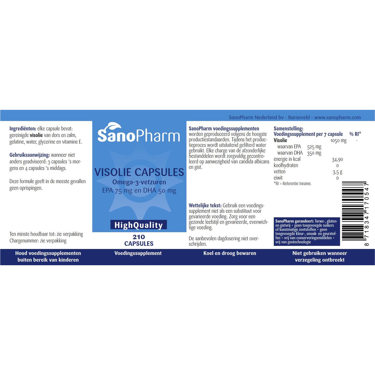 Gezuiverde visolie (Dors en Zalm, (Vis)), Gelatine, Water, Glycerine, Vitamine E.