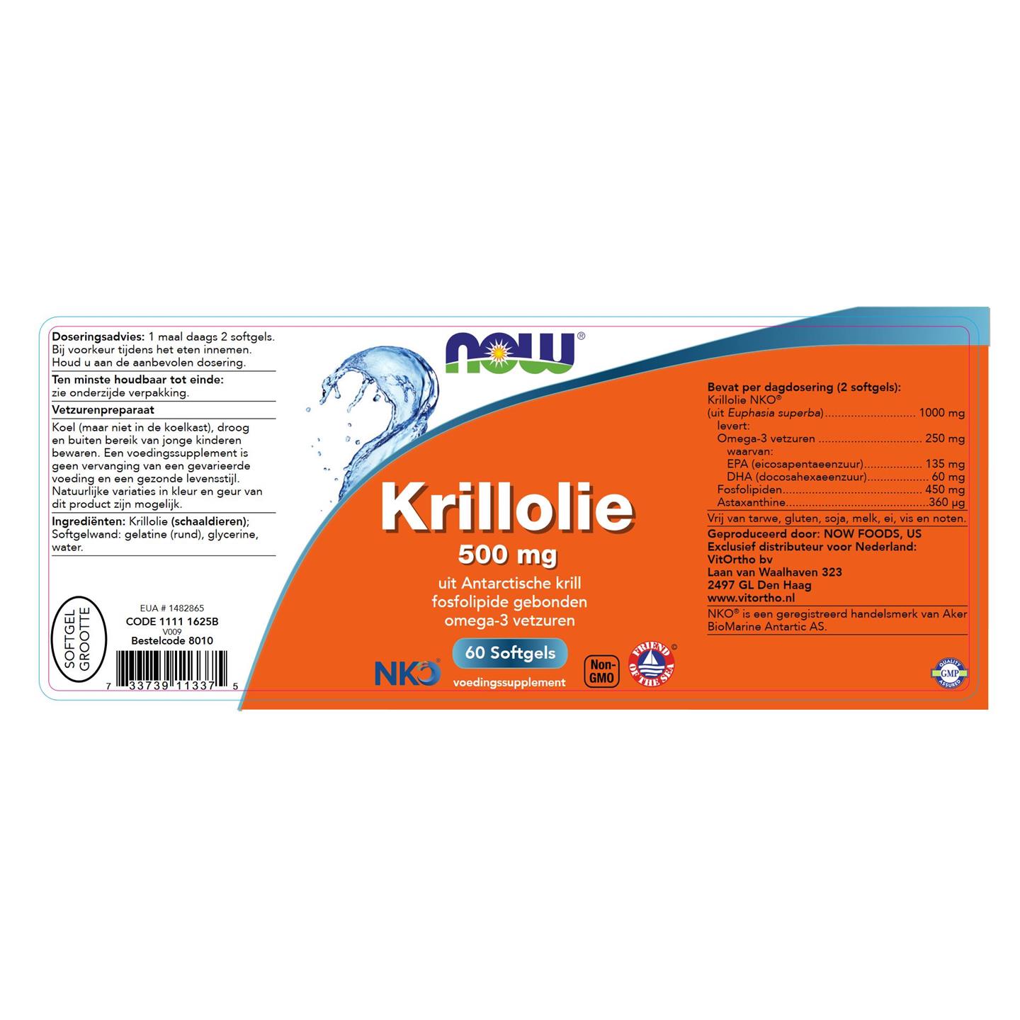 Krillolie (Schaaldieren), Softgel (Gelatine (rund), Glycerine, Water).