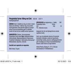 Cellulose, Calciumcarbonaat, Phosphatidylserine (Soja), Antiklontermiddelen (Siliciumdioxide, Magnesiumzouten van vetzuren, Stearinezuur), Crosslinked cellulosegom, Tabletcoating (Hydroxypropylmethylcellulose, Glycerine), Zinkoxide.
