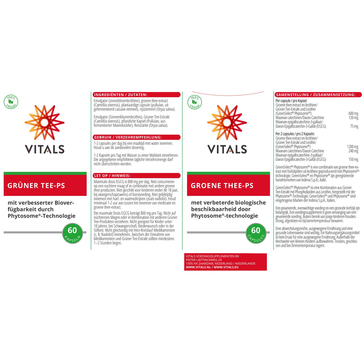 Emulgator (Zonnebloemlecithine), Groene thee (Camellia sinensis) extract, Plantaardige capsule (Pullulan, uit gefermenteerd cassave-zetmeel), Rijstzetmeel (Oryza sativa).