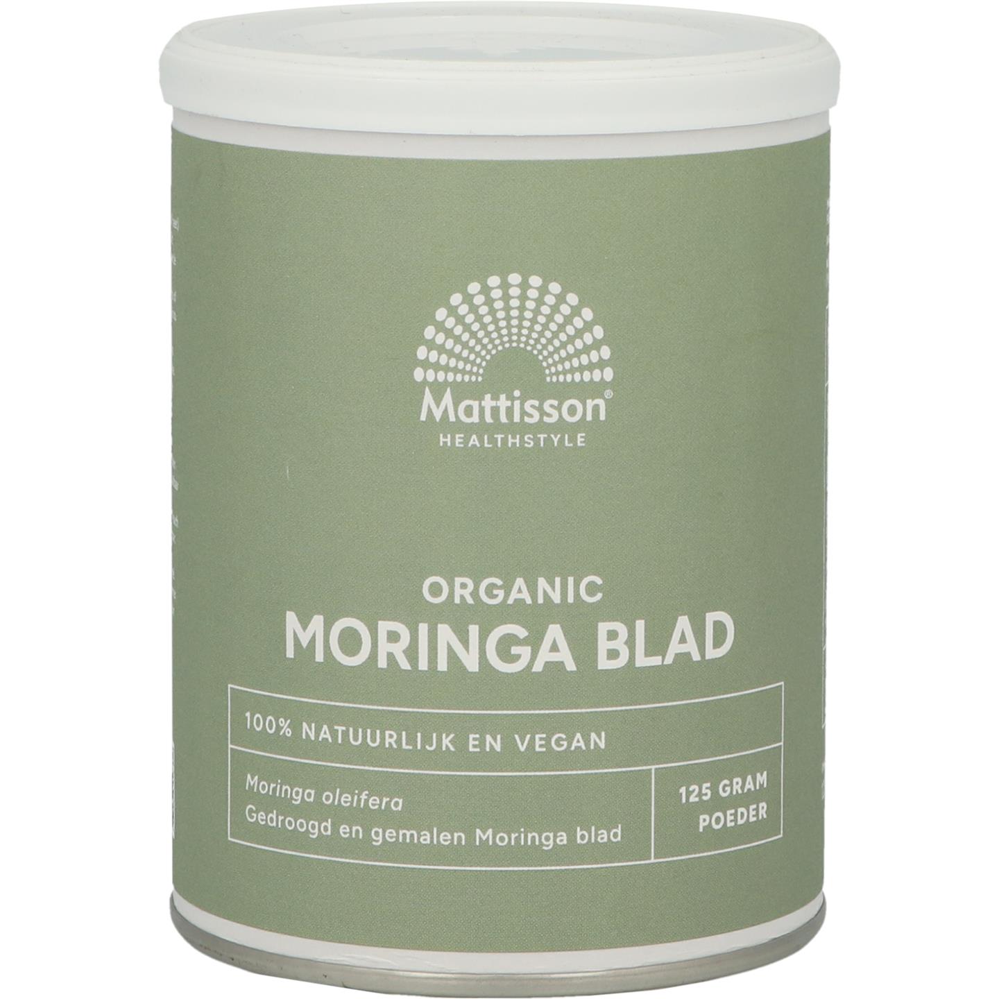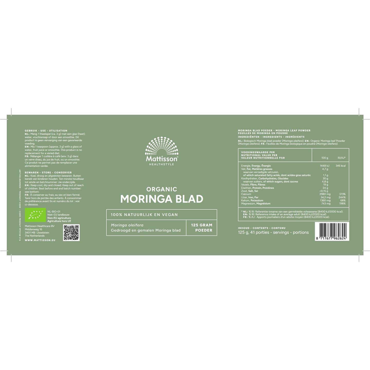 Biologische Moringa blad poeder (Moringa oleifera).Waarschuwing