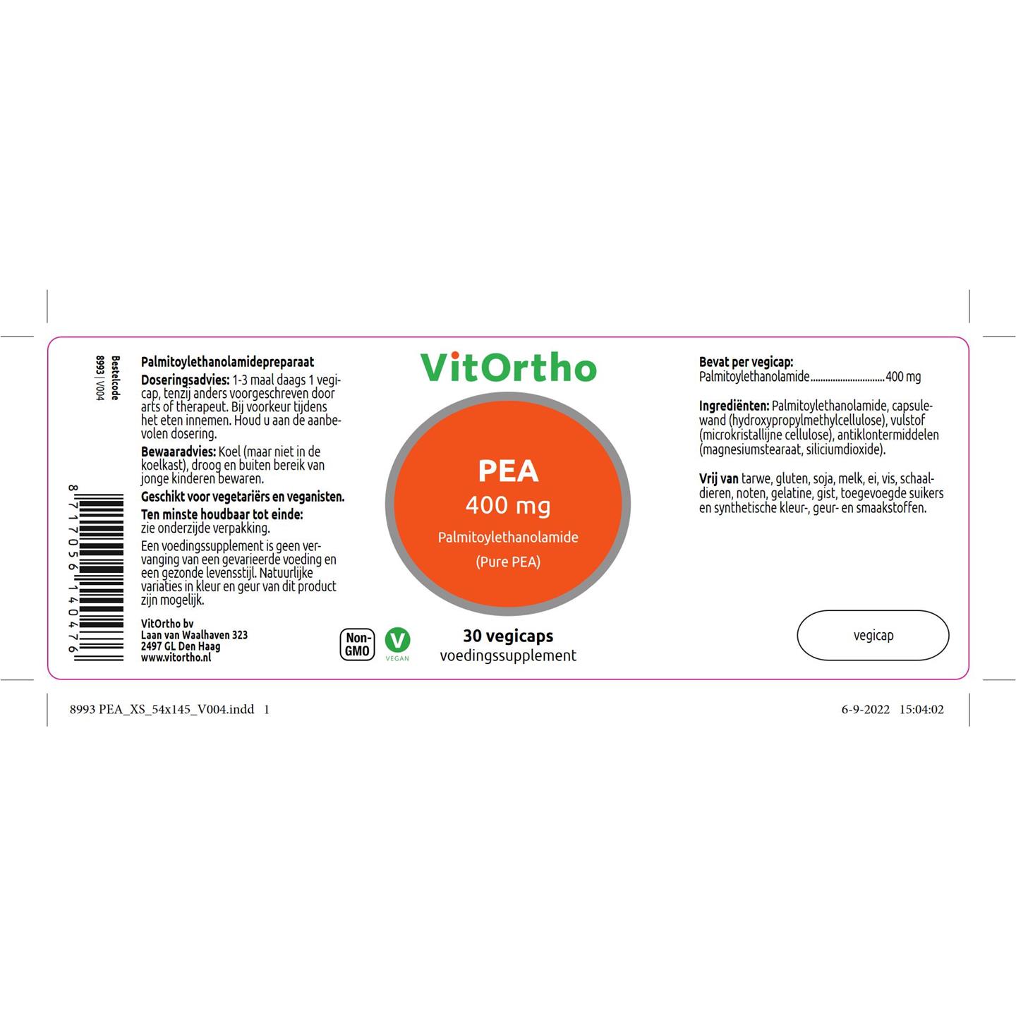 Palmitoylethanolamide (PEA), Capsule (Hydroxypropylmethylcellulose), Vulstof (Microkristallijne cellulose), Antiklontermiddelen (Magnesiumstearaat, Siliciumdioxide).