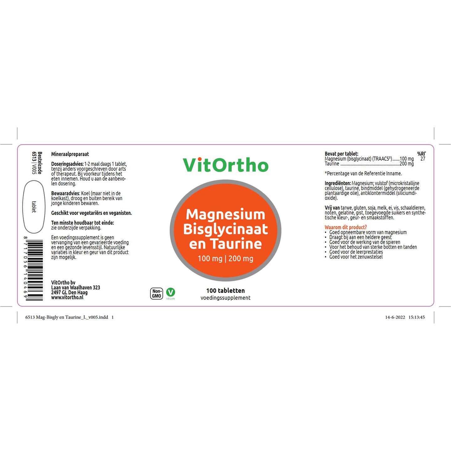 VitOrtho Magnesium Bisglycinaat en Taurine 100 tab