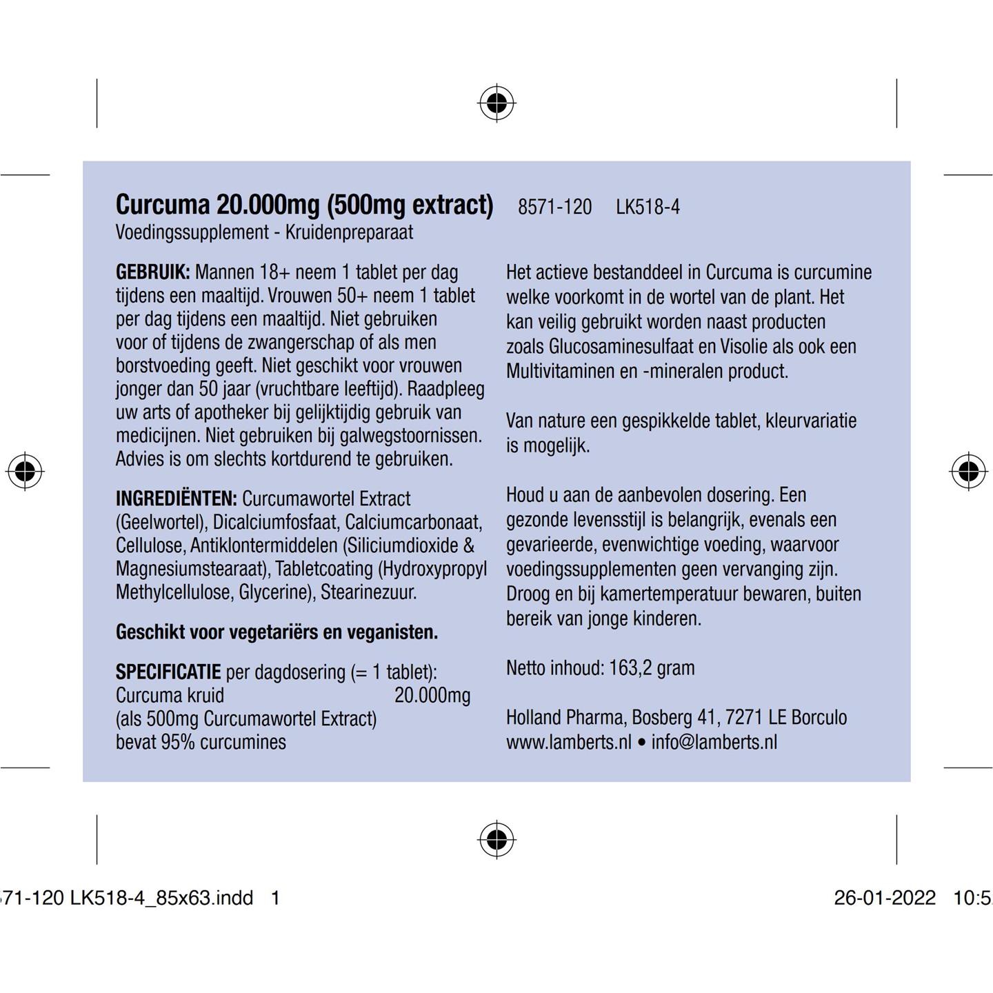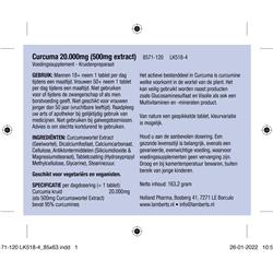 Curcumawortel (Geelwortel) extract, Dicalciumfosfaat, Calciumcarbonaat, Cellulose, Antiklontermiddelen (Siliciumdioxide, Magnesiumstearaat), Tabletcoating (Hydroxypropylmethylcellulose, Glycerine), Stearinezuur.