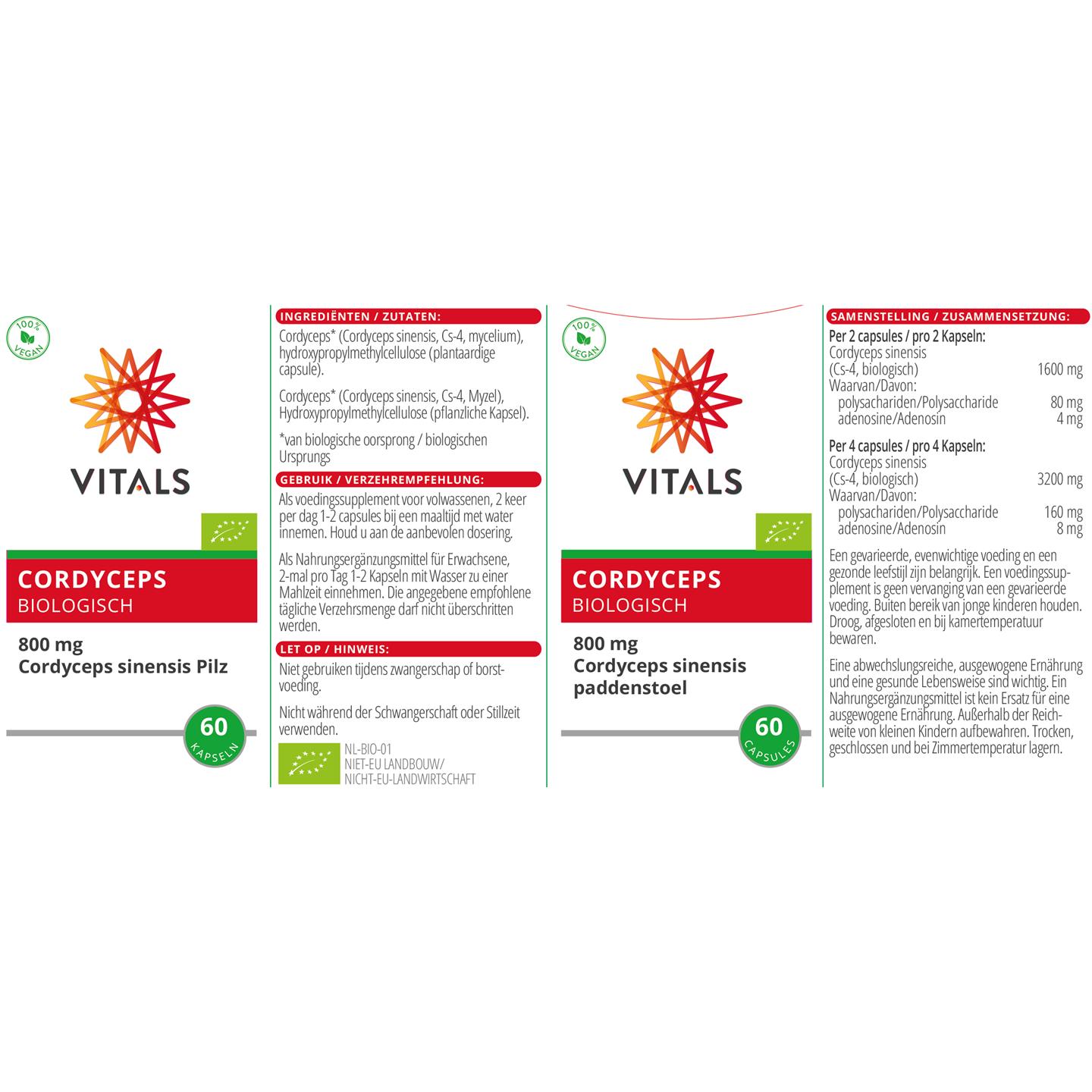 Cordyceps (Cordyceps sinensis, Cs-4, mycelium), Plantaardige capsule (Hydroxypropylmethylcellulose).
