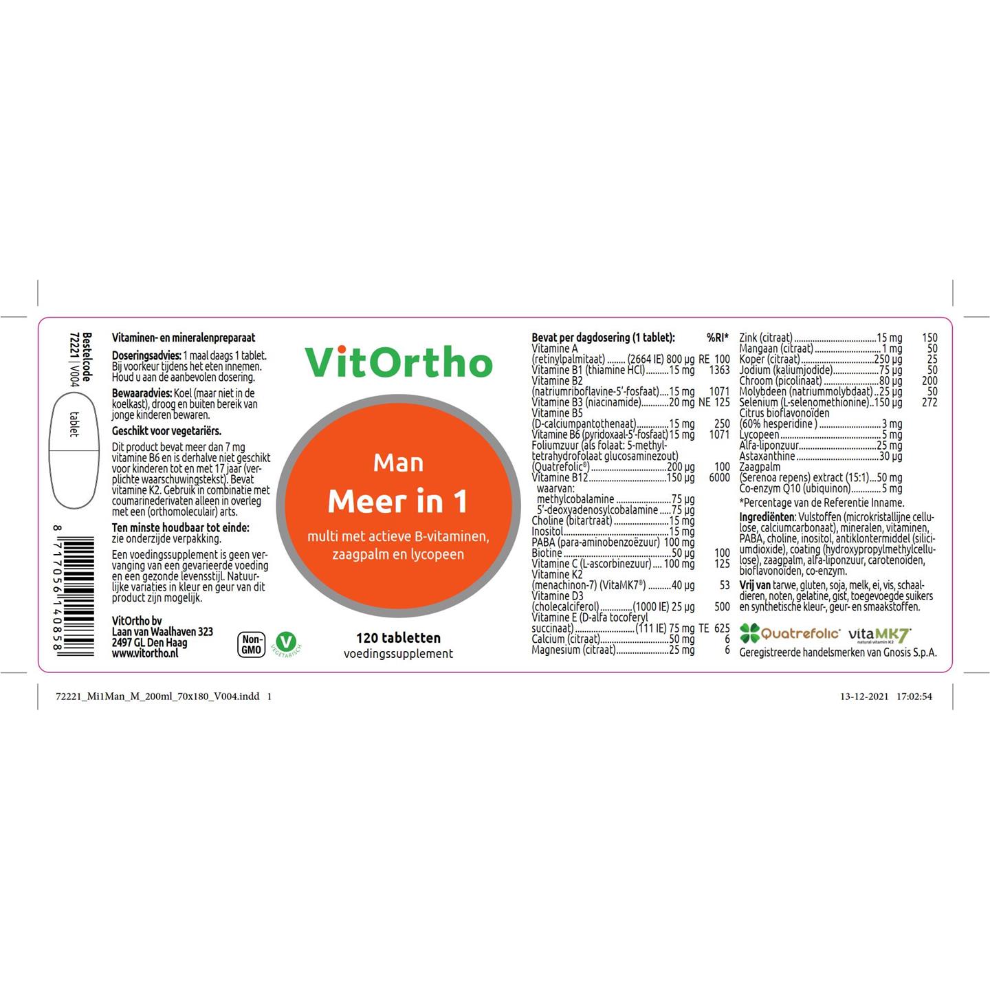 Vulstoffen (Microkristallijne cellulose, Calciumcarbonaat), Mineralen, Vitaminen, PABA (para-aminobenzoëzuur), Choline, Inositol, Antiklontermiddel (Siliciumdioxide), Coating (Hydroxypropylmethylcellulose), Zaagpalm (Serenoa repens) extract, Alfa-Liponzuur, Carotenoïden, Bioflavonoïden, Co-enzym Q10 (ubiquinon).