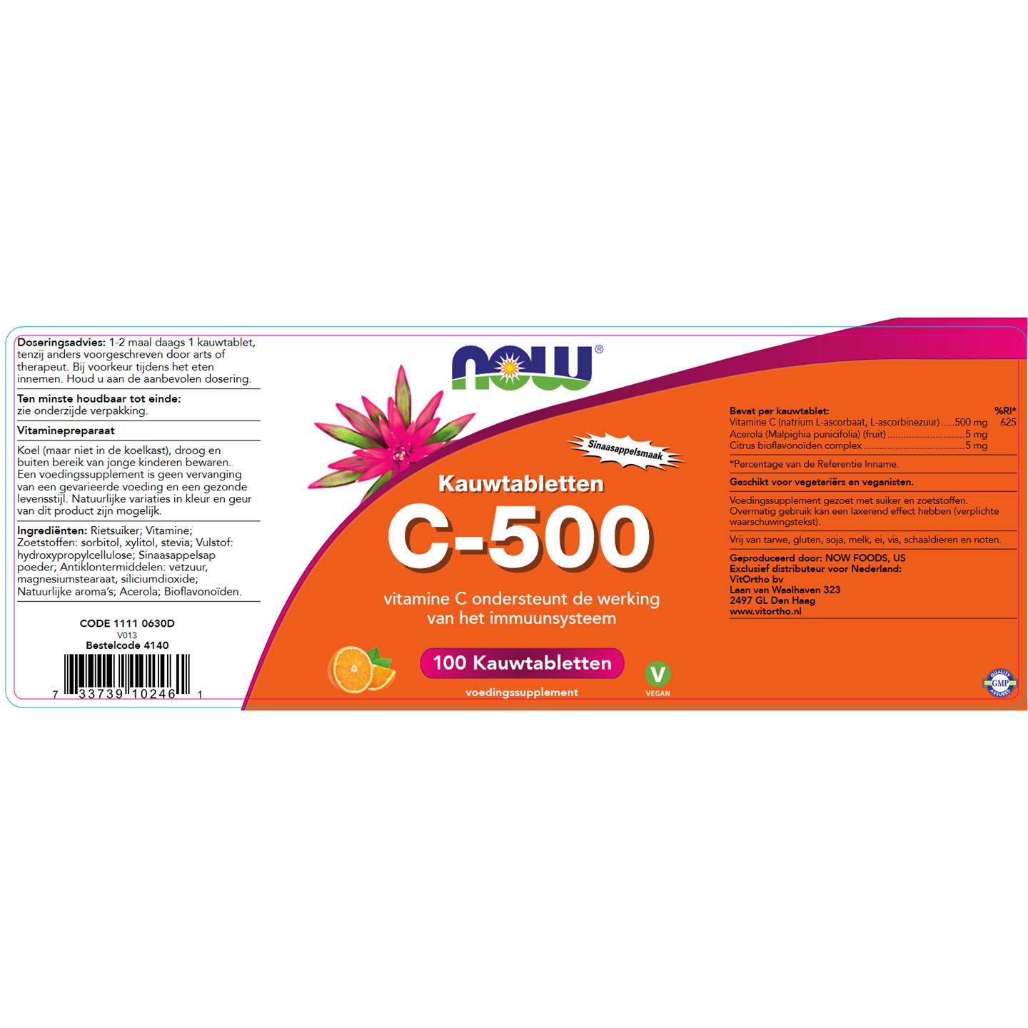Rietsuiker, Vitamine, Zoetstoffen (Sorbitol, Xylitol, Stevia), Vulstof (Hydroxypropylcellulose), Sinaasappelsap poeder, Antiklontermiddelen (Vetzuur, Magnesiumstearaat, Siliciumdioxide), Natuurlijke aroma's, Acerola, Bioflavonoïden.
