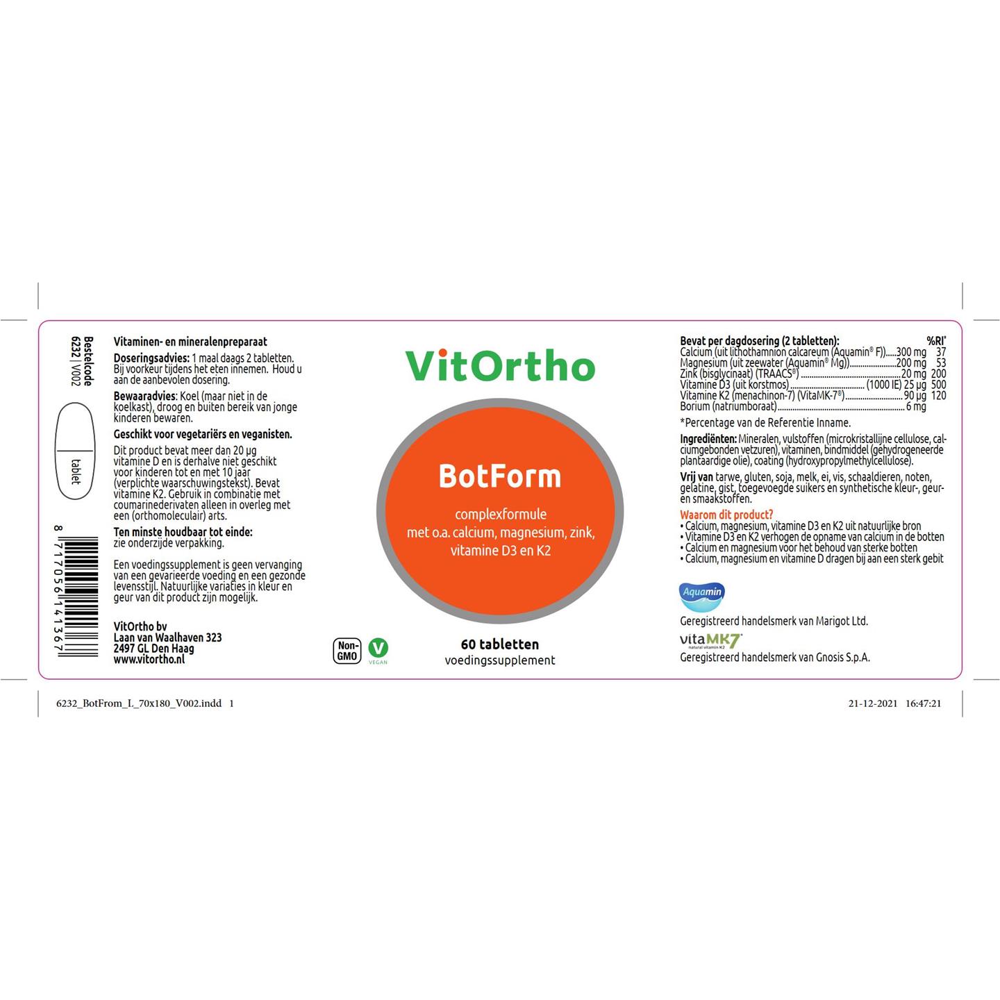 Mineralen, Vulstoffen (Microkristallijne cellulose, Calciumgebonden vetzuren), Vitaminen, Bindmiddel (Gehydrogeneerde plantaardige olie), Coating (Hydroxypropylmethylcellulose).