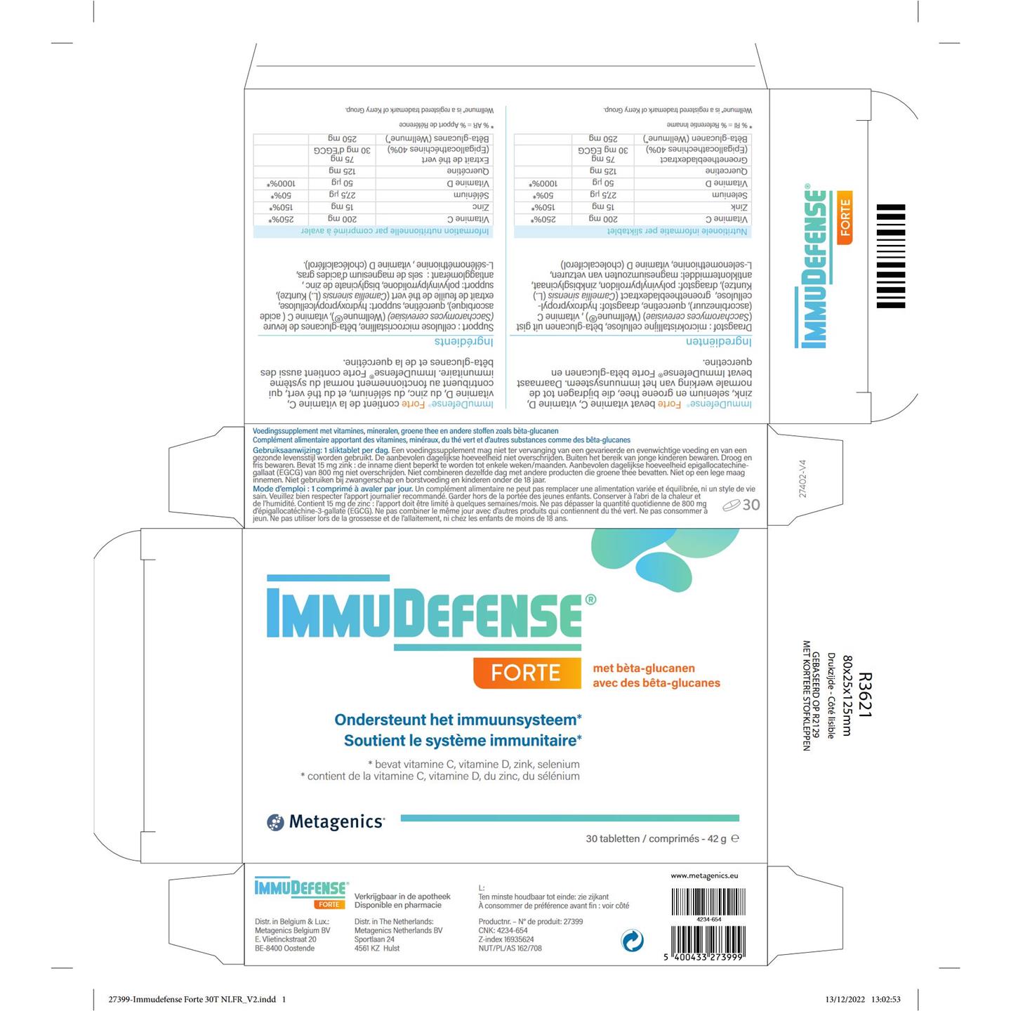 Draagstof (Microkristallijne cellulose), Bèta-glucanen (Wellmune®) (Gist (Saccharomyces cerevisiae)), Vitamine C (ascorbinezuur), Quercetine, Draagstof (Hydroxypropylcellulose), Groene thee (Camellia sinensis) blad extract, Draagstof (Polyvinylpyrrolidon), Zinkbisglycinaat, Antiklontermiddel (Magnesiumzouten van vetzuren), Selenium (L-selenomethionine), Vitamine D3 (cholecalciferol).