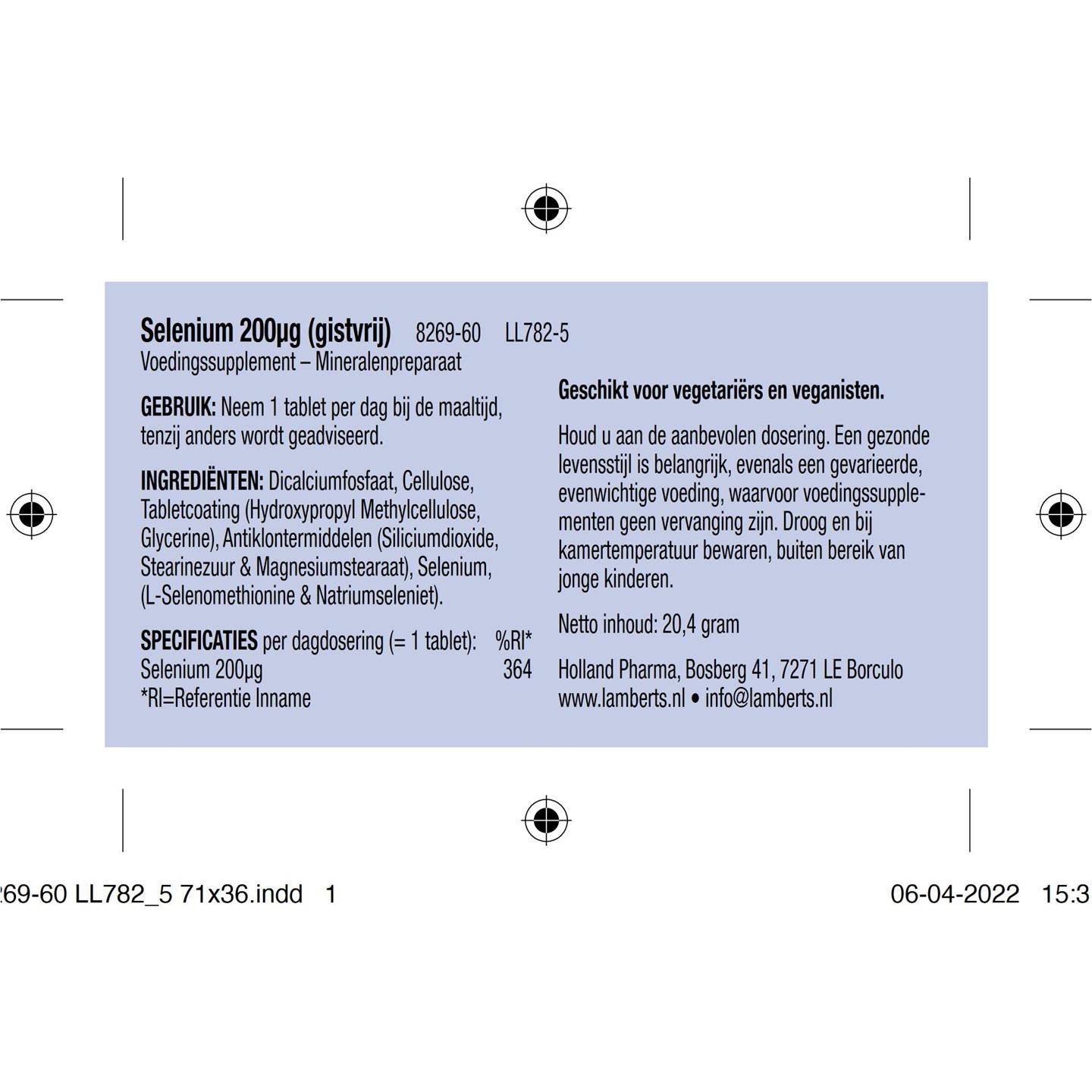 Dicalciumfosfaat, Cellulose, Tabletcoating (Hydroxypropylmethylcellulose, Glycerol), Antiklontermiddelen (Siliciumdioxide, Stearinezuur, Magnesiumzouten van vetzuren), Selenium (L-selenomethionine, natriumseleniet).