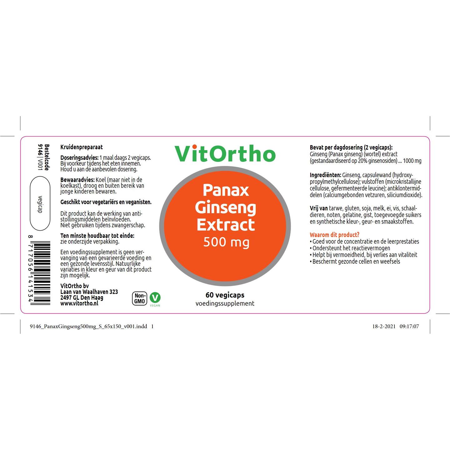 VitOrtho Panax ginseng extract 500 mg 60 vcaps
