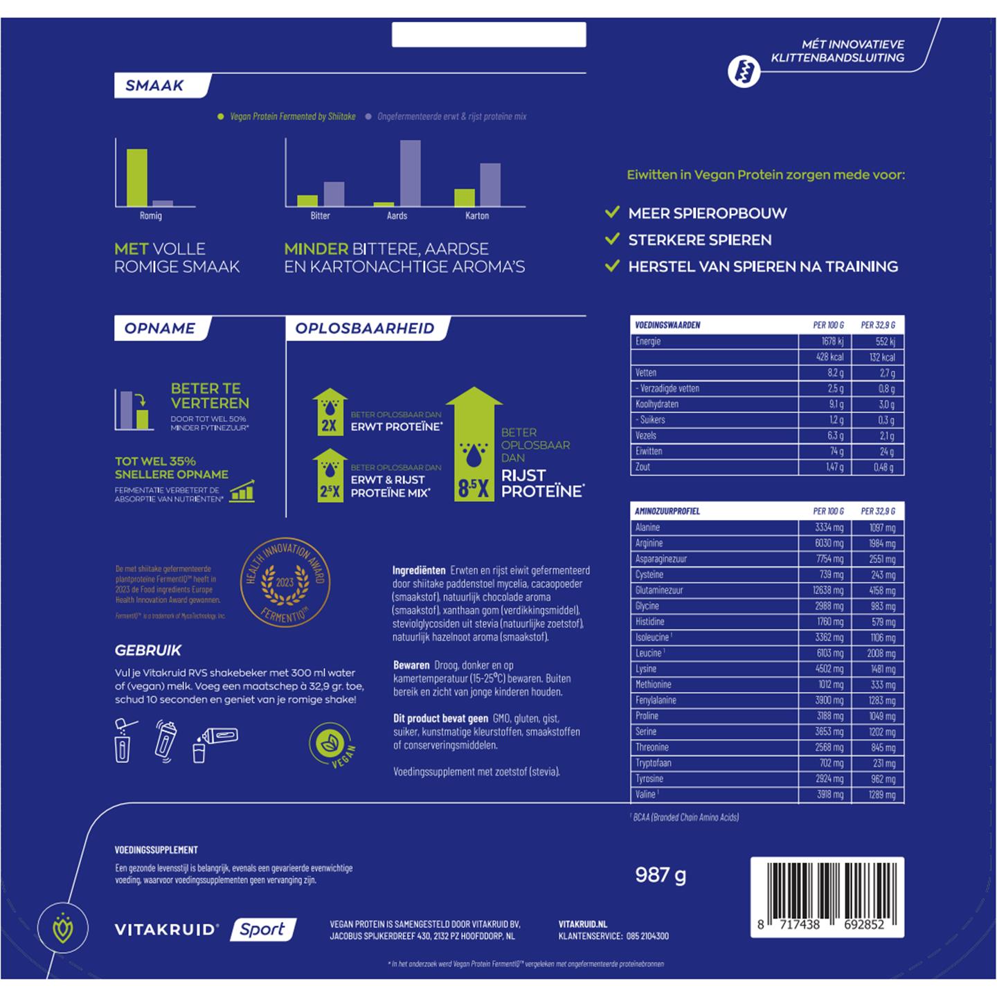VitaKruid Vegan Protein Fermented By Shiitake choco. hazelno 987 gram