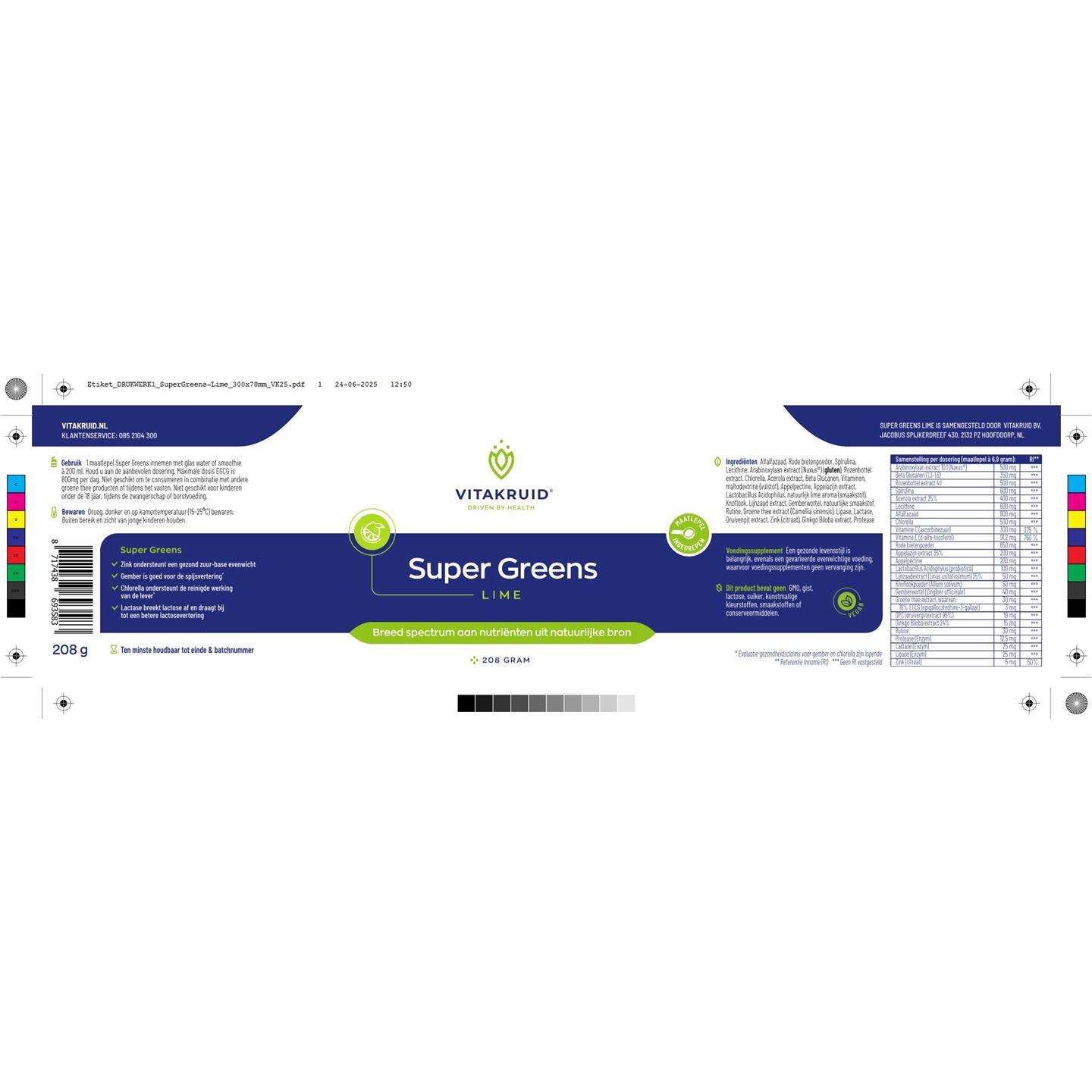 Alfalfazaad, Rode bietenpoeder, Spirulina, Lecithine, Arabinoxylaan extract (Naxus®) (Gluten), Rozenbottel extract, Chlorella, Acerola extract, Beta glucanen, Vitaminen, Maltodextrine (Vulstof), Appelpectine, Appelazijn extract, Lactobacillus acidophilus, Natuurlijk lime aroma (Smaakstof), Knoflook, Lijnzaad extract, Gemberwortel, Natuurlijke smaakstof, Rutine, Groene thee extract (Camellia sinensis), Lipase, Lactase, Druivenpit extract, Zink (citraat), Ginkgo biloba extract, Protease.