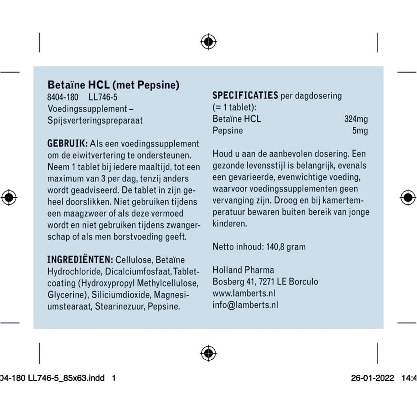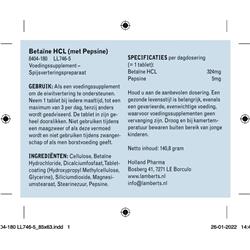 Lamberts Betaïne HCl met Pepsine 180 tab