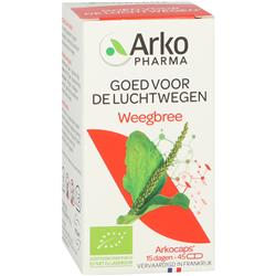 Lancetvormig BIO Weegbree bladpoeder (Plantago lanceolata L.), Capsulewand van plantaardige oorsprong (Hydroxypropylmethylcellulose).