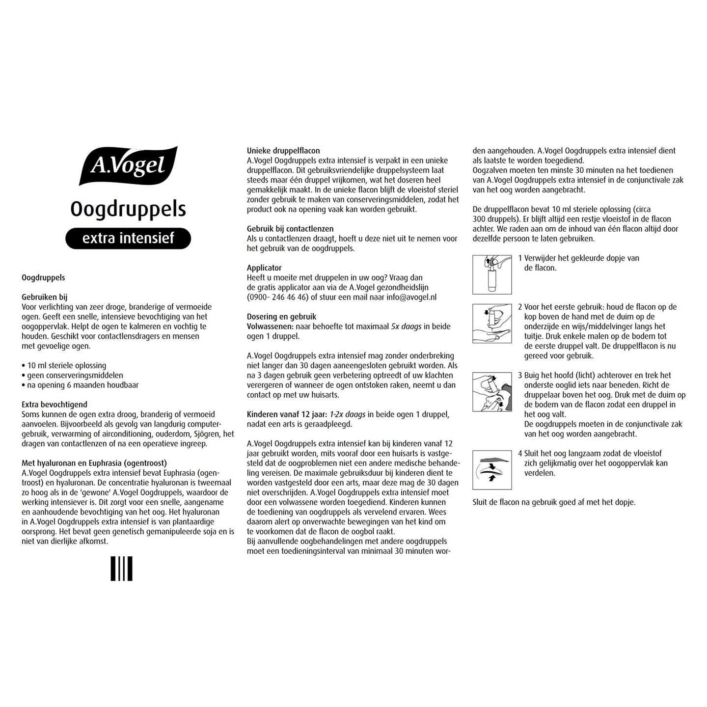 A. Vogel Oogdruppels extra intensief mag zonder onderbreking niet langer dan 30 dagen aaneengesloten gebruikt worden.