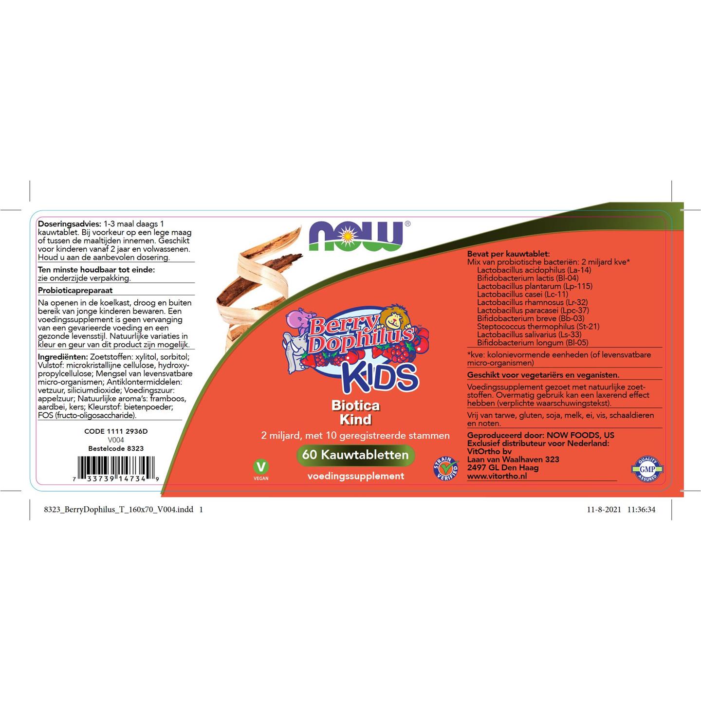 NOW BerryDophilus KIDS Biotica Kind 60 kauwtab